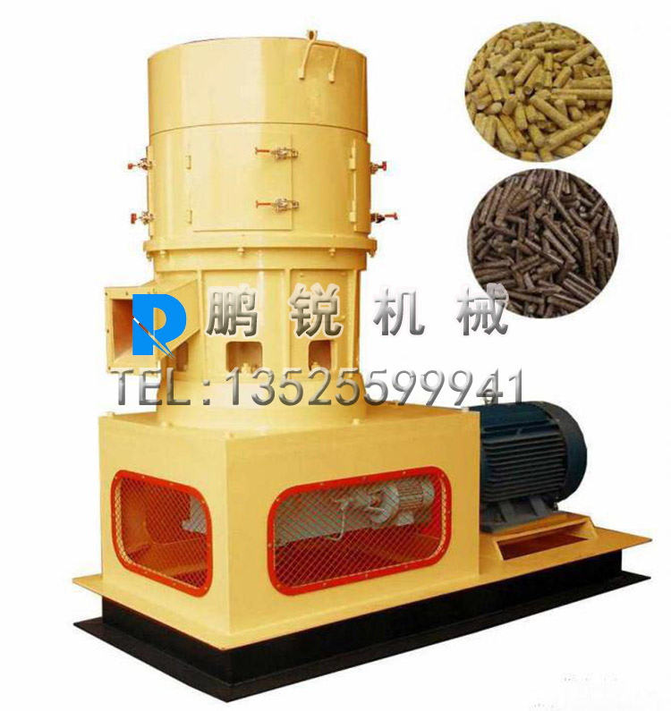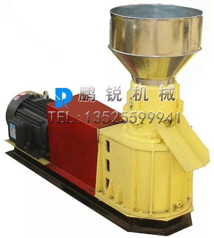 平模顆粒機型采用皮帶及蝸輪蝸桿兩級傳動,轉動平穩、噪聲低、喂料依靠物料自身的重力,避免堵塞、主軸的轉速約為60rpm,壓輥的線速度約為2.5m/s,可有效去除物料中的氣體,增加了產品的緊密程度。